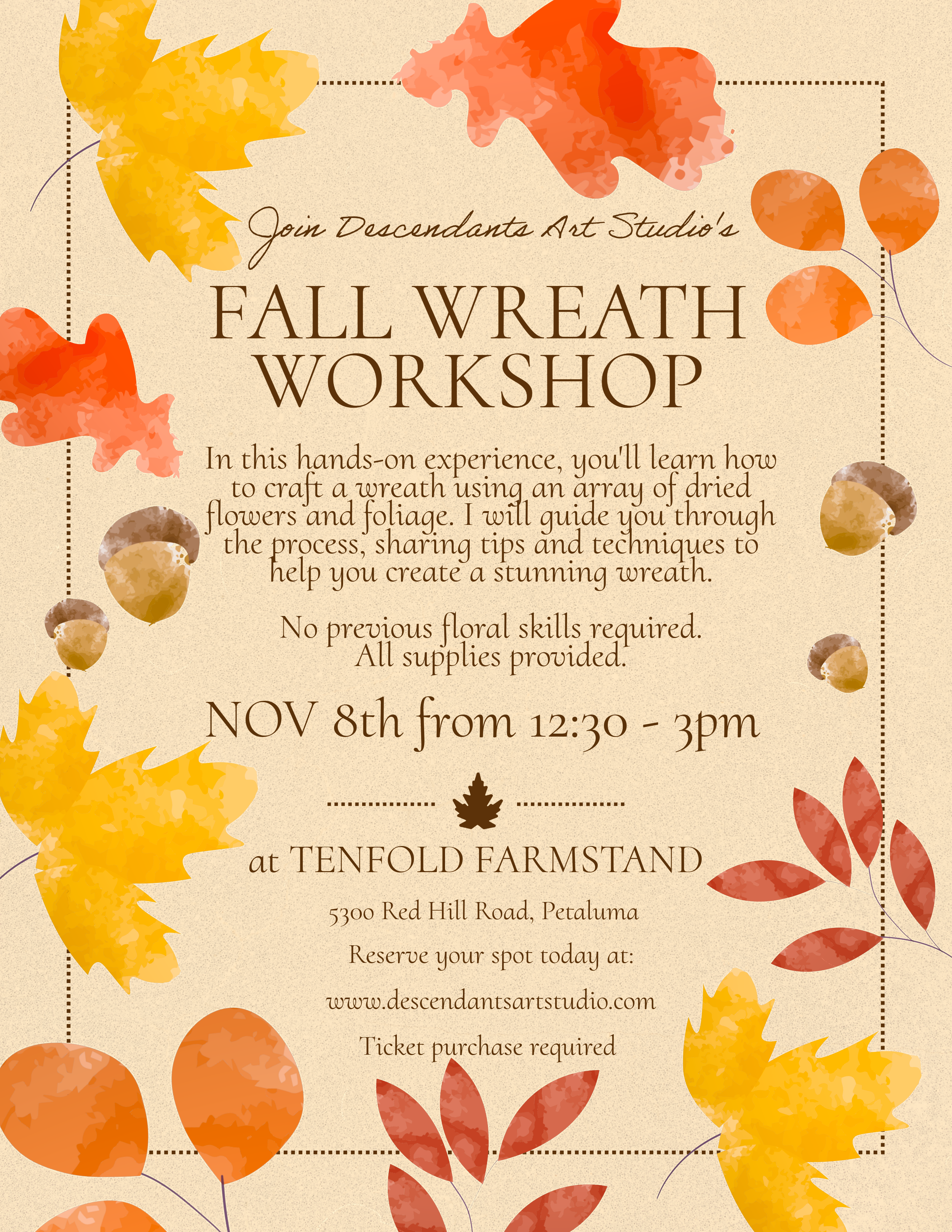 Ticket purchase required. https://www.descendantsartstudio.com/fall-wreath-workshop
