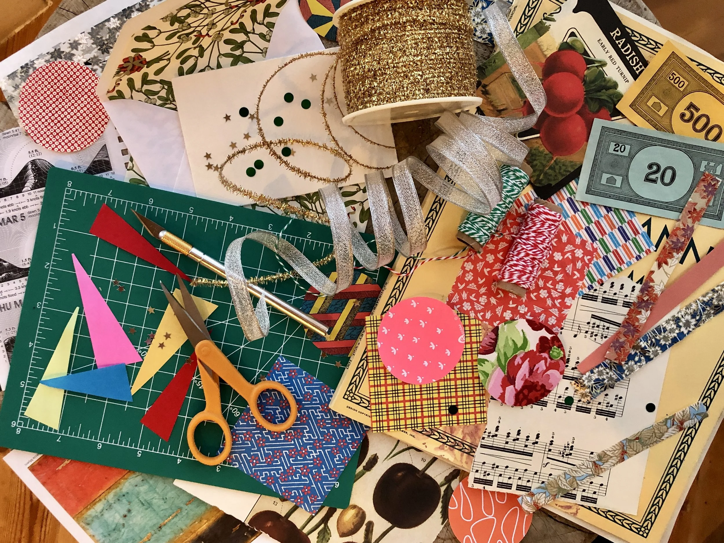 *Please bring your own pair of good scissors for paper cutting and an X-acto knife if you have one. I’ll have small cutting mats, glue sticks, mod podge and tape.