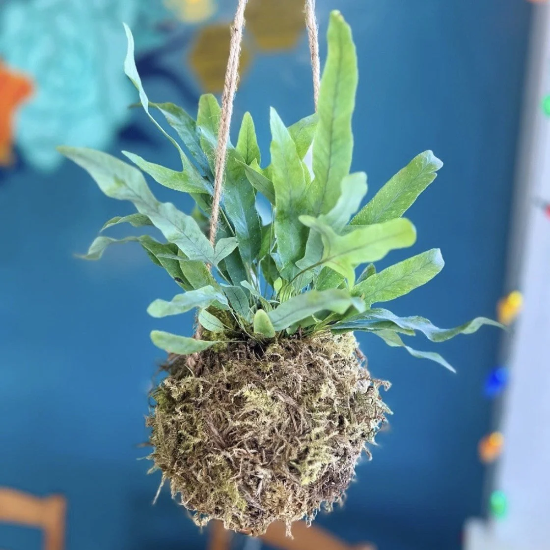 Kokedama (moss ball) is a Japanese art form of living sculpture suspended in air.